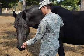 Working with horses has a naturally calming and healing effect on people, helping reduce symptoms of PTSD for example.